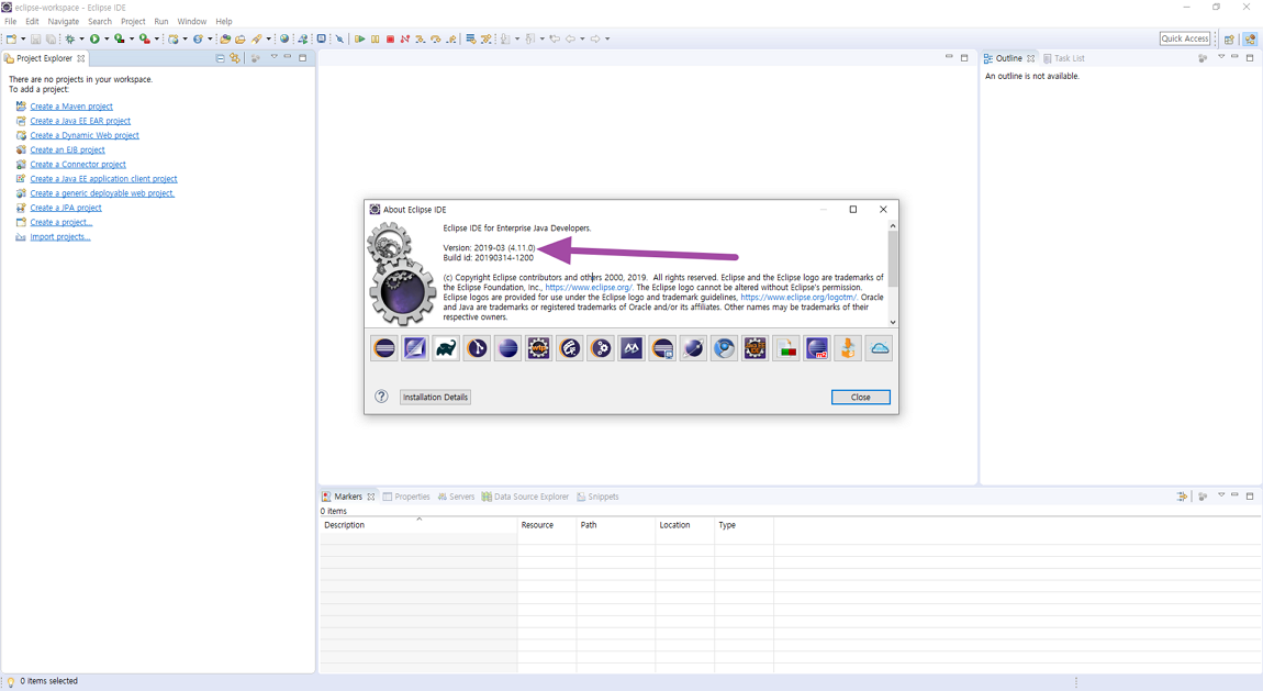 그래서 제가 현재 설치한 이클립스 버전을 확인해 봤습니다. 4.11 버전으로 Remote System Explorer 플러그인에서 지원하는 버전보다 높습니다.