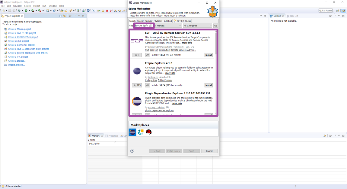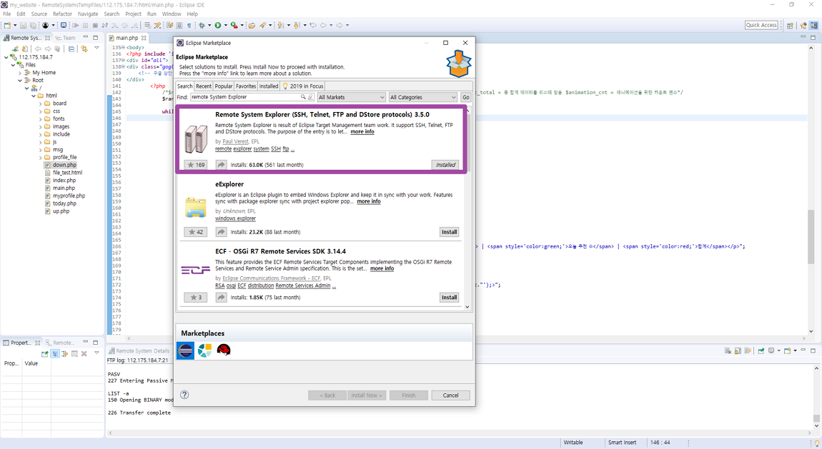 진행하면서 이클립스를 이용해 FTP 접근을 하기 위해 유용한 플러그인 Remote System Explorer를 설치하려고 했는데 마켓플레이스에서 검색도 안 되고 설치도 제대로 진행이 안 되더군요.