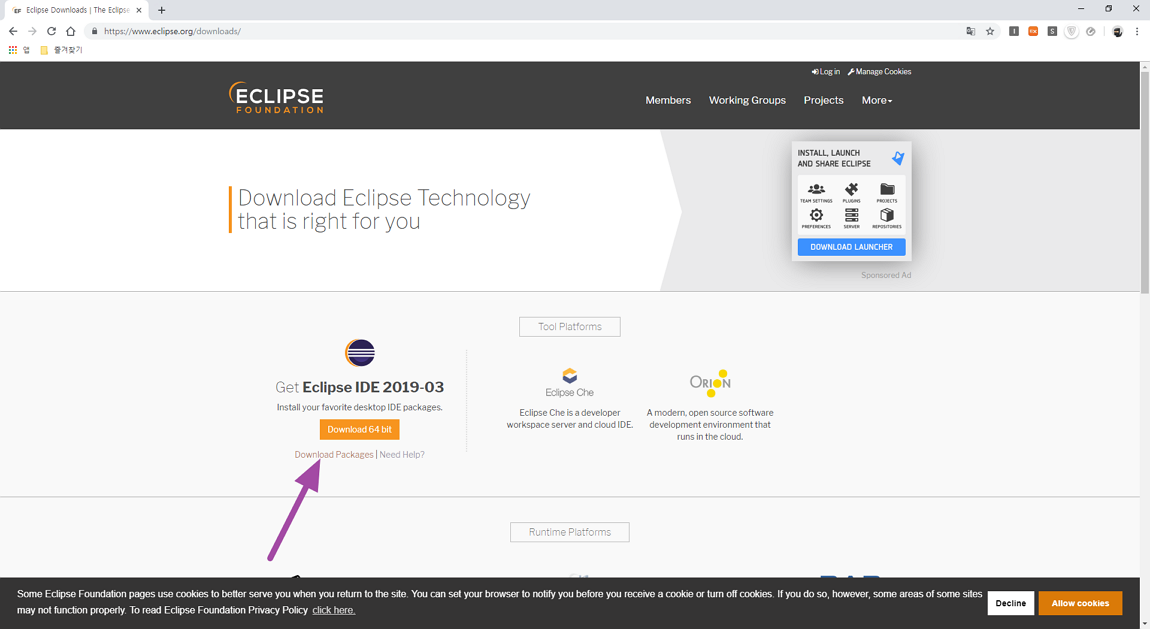 현재 다운로드받는 버전과 어떤 타입의 이클립스 버전인지 상세 내용을 확인하실 수 있습니다.