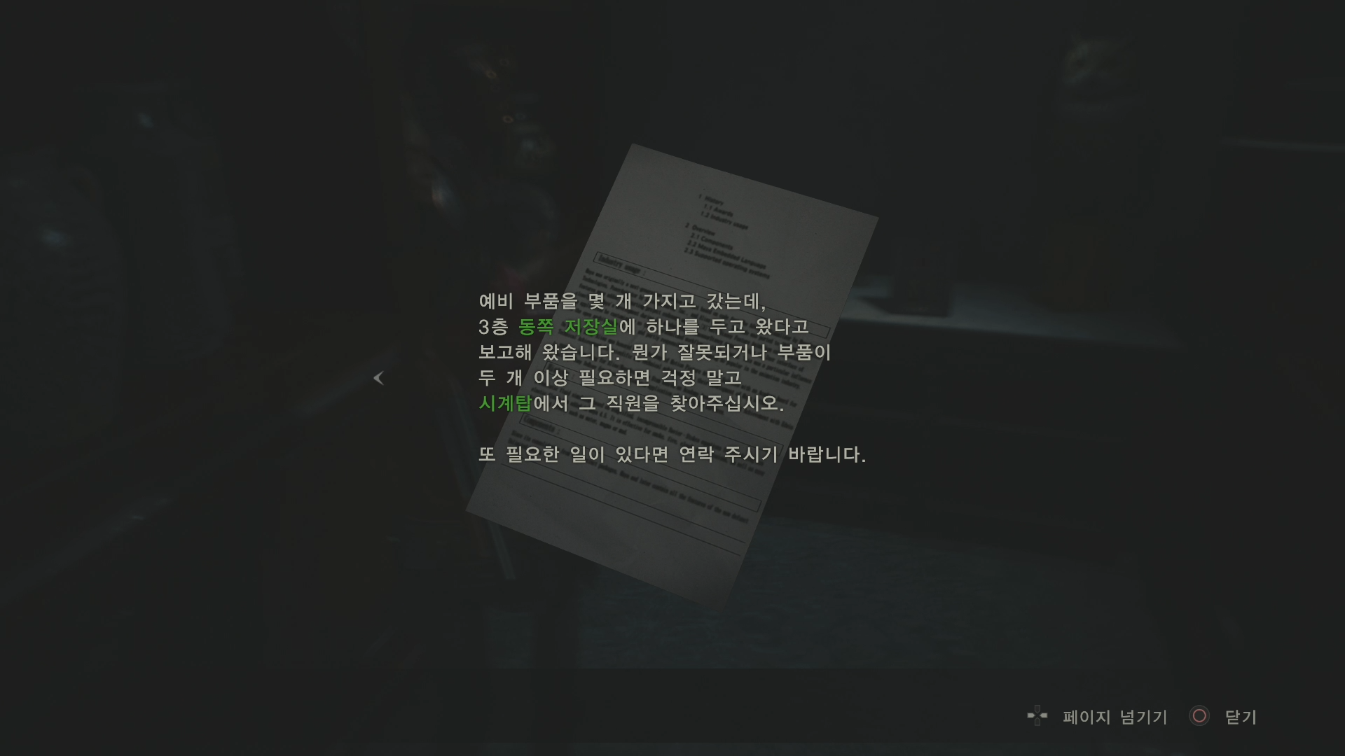 단서뿐만이 아니라 스토리와 관련된 여러 가지 자료들도 모아가며 파악하며 조사하며 게임에 집중할 수 있었던 기억이 납니다.