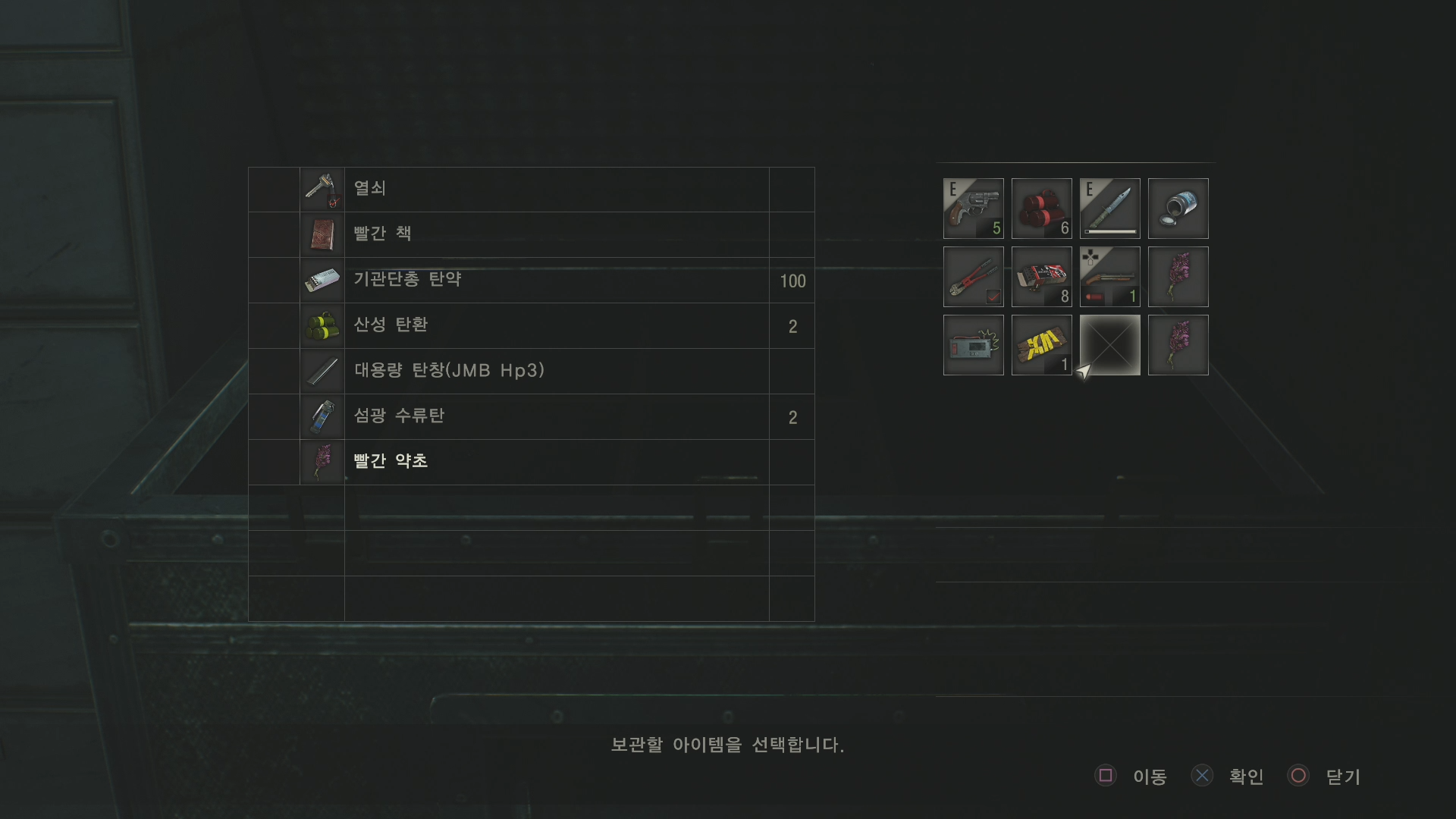 아이템 창고와 아이템을 소지할 수 있는 화면인데 아이템은 단순하게 정말 필요한 것들만 있어서 개인적으로는 굉장히 좋았습니다.