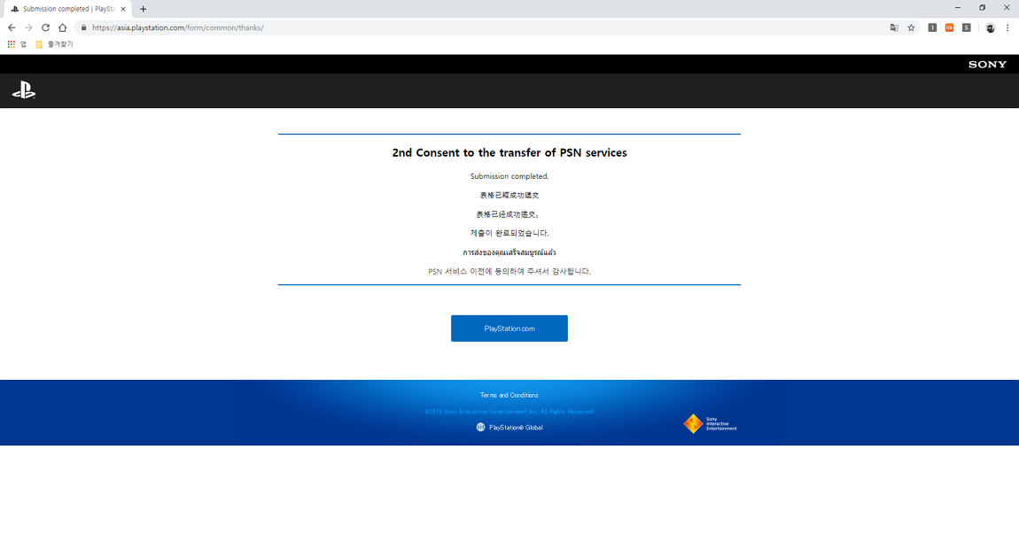 그럼 아래 이미지와 같이 PSN 서비스 이전에 동의가 완료되었다고 나옵니다.
