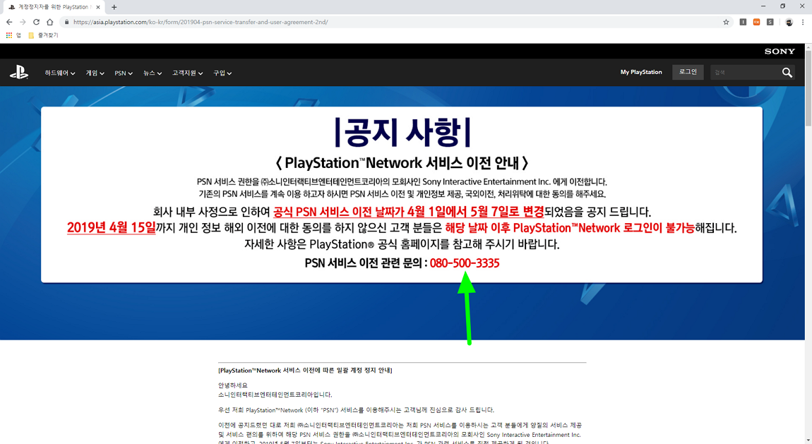 그래서 이용약관 동의를 하기 전에 PSN 고객센터에 문의를 진행해 보았습니다.