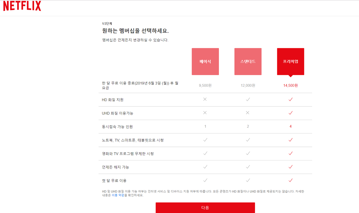 넷플릭스 무료 이용 방법은 사이트에 나온 절차대로 진행하면 어려운 점은 없었습니다. 필요한 정보라고 판단되는 것은 이용 가격에 따른 차이 정도일 것 같습니다.