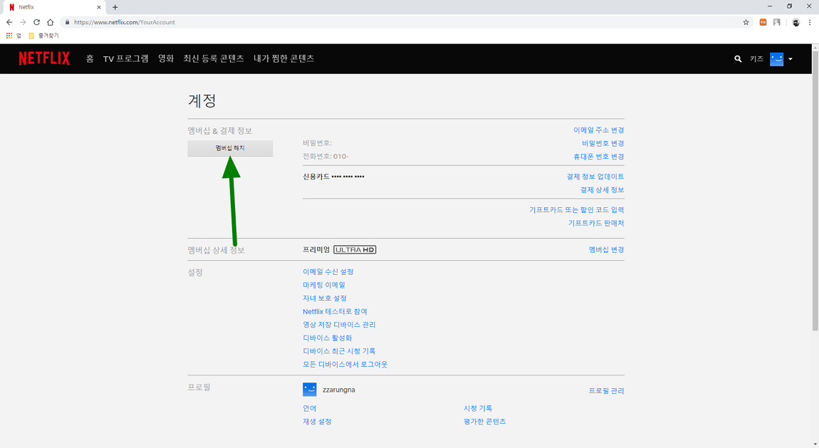 넷플릭스 사이트에 접근해 프로필 > 계정 메뉴를 누르시면 간단히 멤버십 해지를 진행하실 수 있습니다.