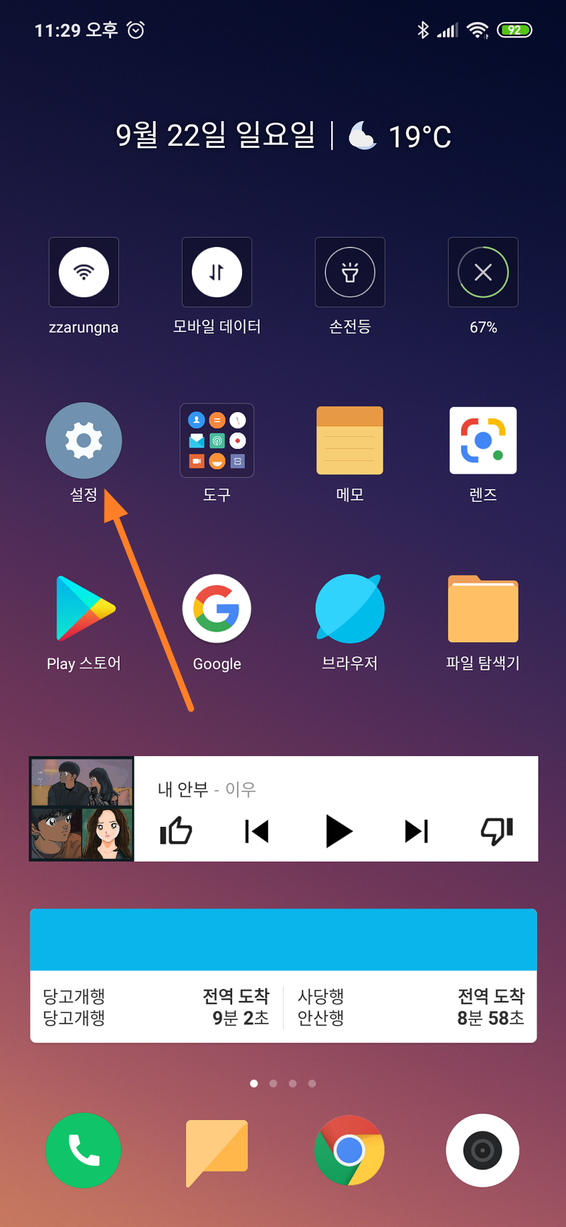 가장 먼저 홍미노트 바탕 화면에서 설정 메뉴를 눌러 주시면 됩니다.