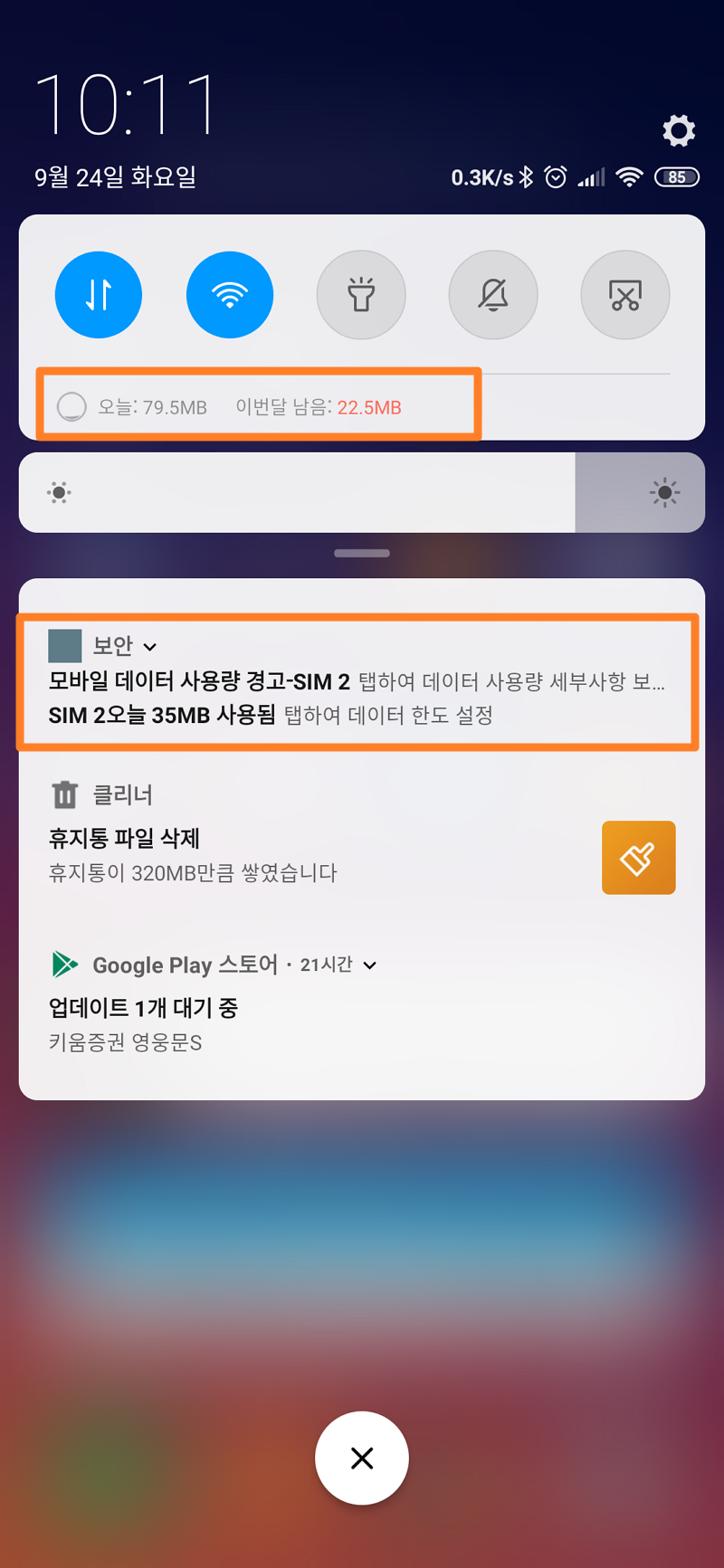 샤오미 홍미노트7 데이터 사용량 확인 및 데이터 제한하는 방법