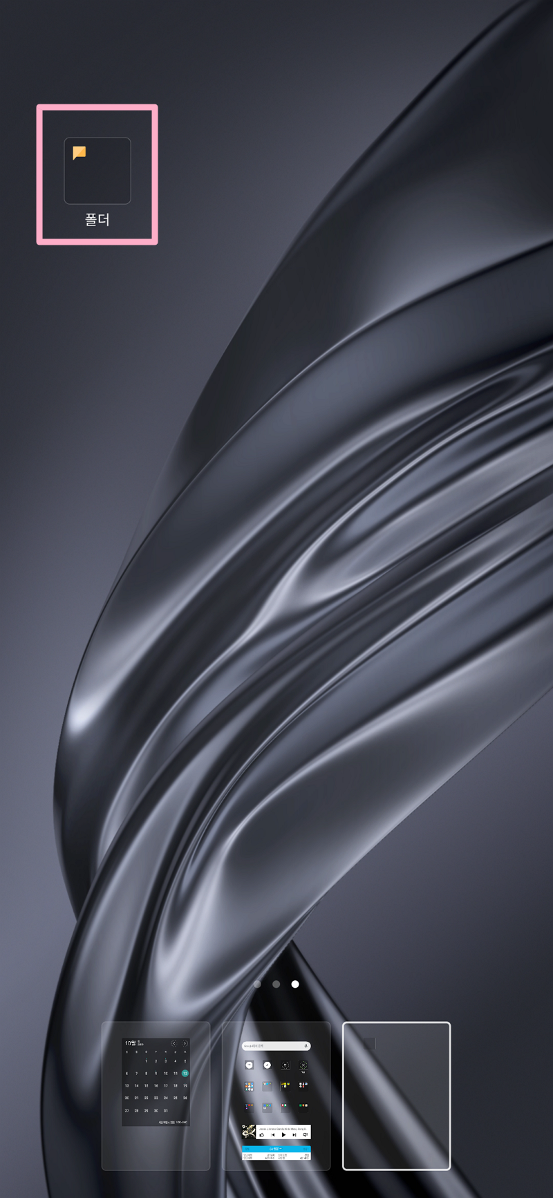 먼저 핸드폰 바탕화면에서 아래 이미지와 같이 빈영역을 누르고 계시면 추가 설정 메뉴들이 나옵니다.