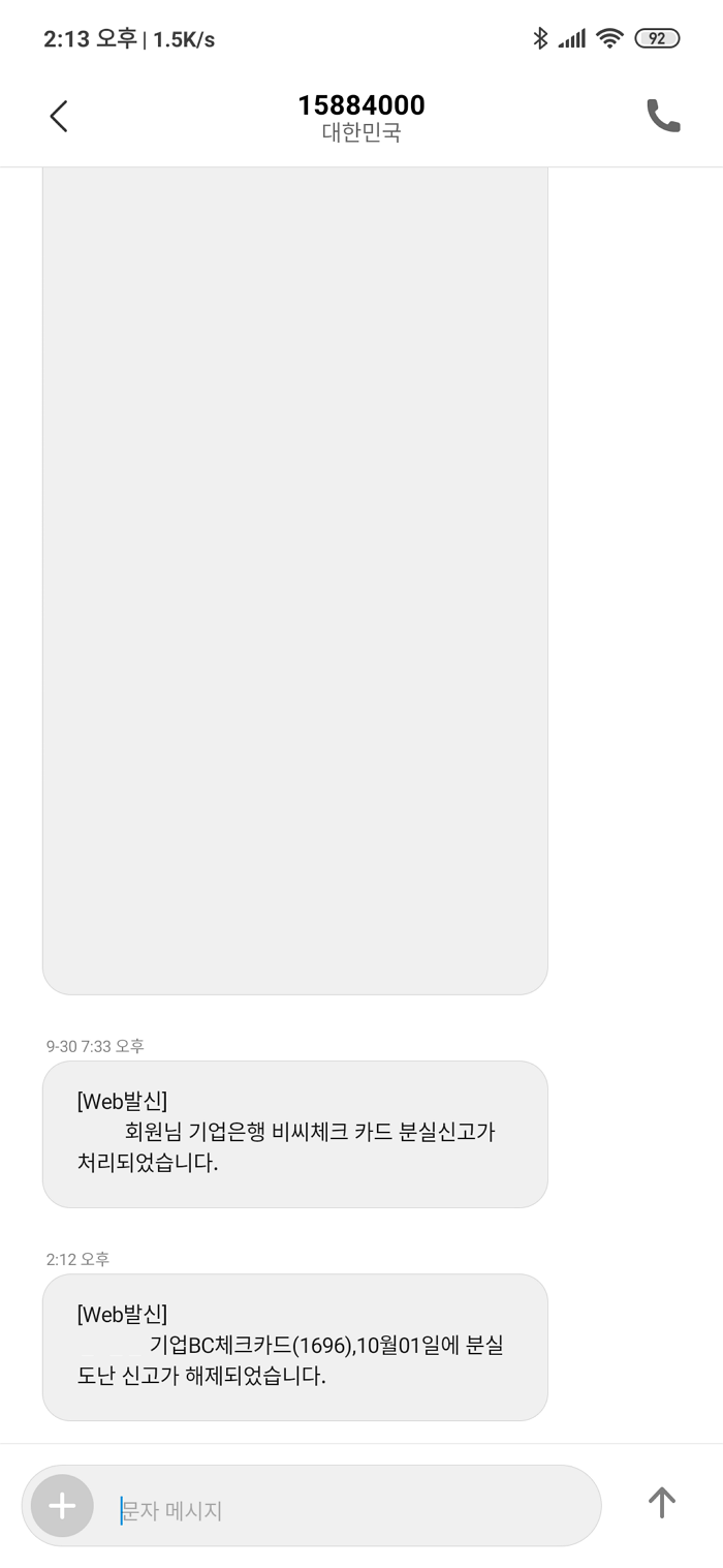 모든 과정이 끝나면 아래 이미지와 같이 문자 메시지로 분실 도난 신고가 해제되었다고 나오더군요.