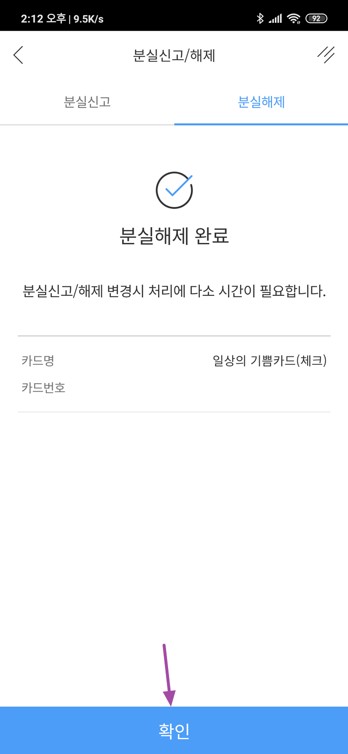 다행히 지갑을 다시 찾고 카드 분실해제를 하려고 전화 통화를 해보니 카드 분실해제를 하려면 애플리케이션을 통해서 진행하거나 은행에 직접 방문해서 신분증을 제출해서 신용카드/체크카드 분실 신고를 할 수 있다고 하더군요.