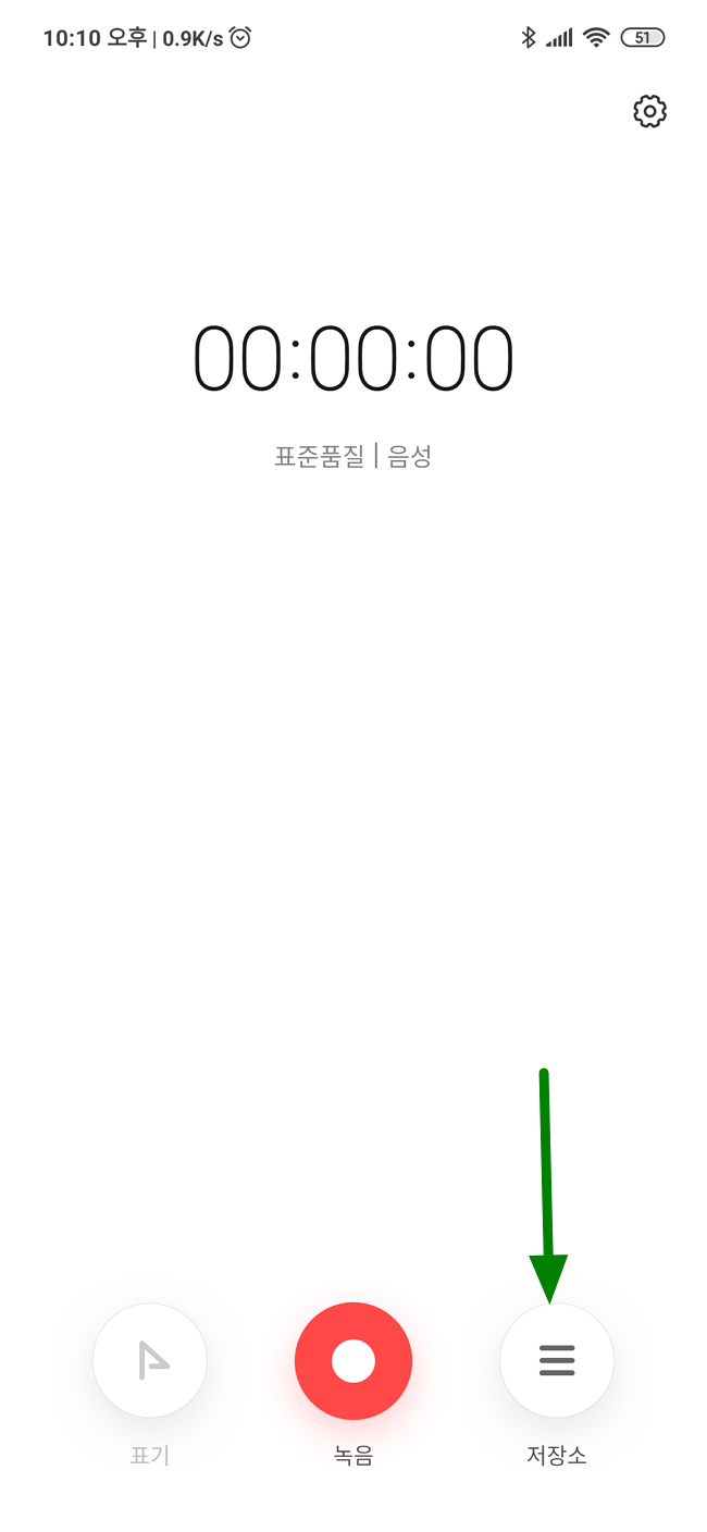 녹음기 앱에서 저장소 메뉴를 눌러 주시면 됩니다.
