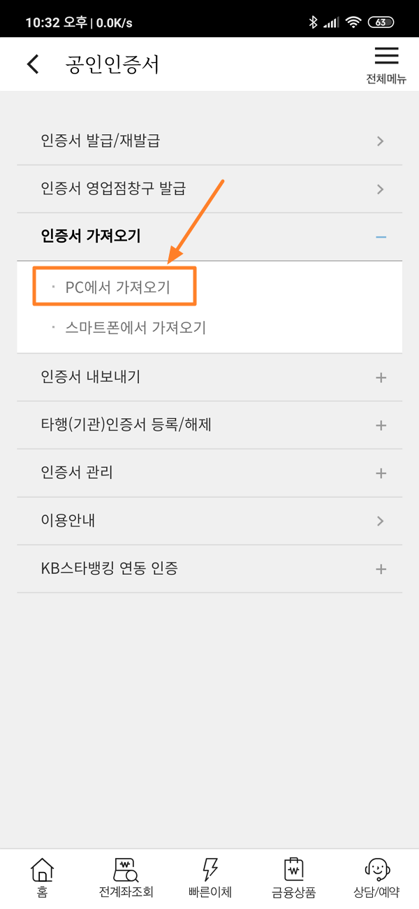 국민은행 컴퓨터에 있는 공인인증서를 모바일로 옮기는 방법