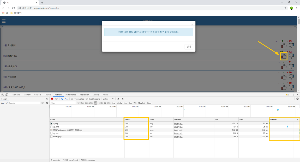 Network를 활용해 굉장히 유용했던 부분은 Ajax를 이용해 페이지 전환없이 가져오는 데이타의 경우 크롬 브라우저의 Networ를 활용한다면 오류 해결이 좀더 빨랐던 기억이 납니다.