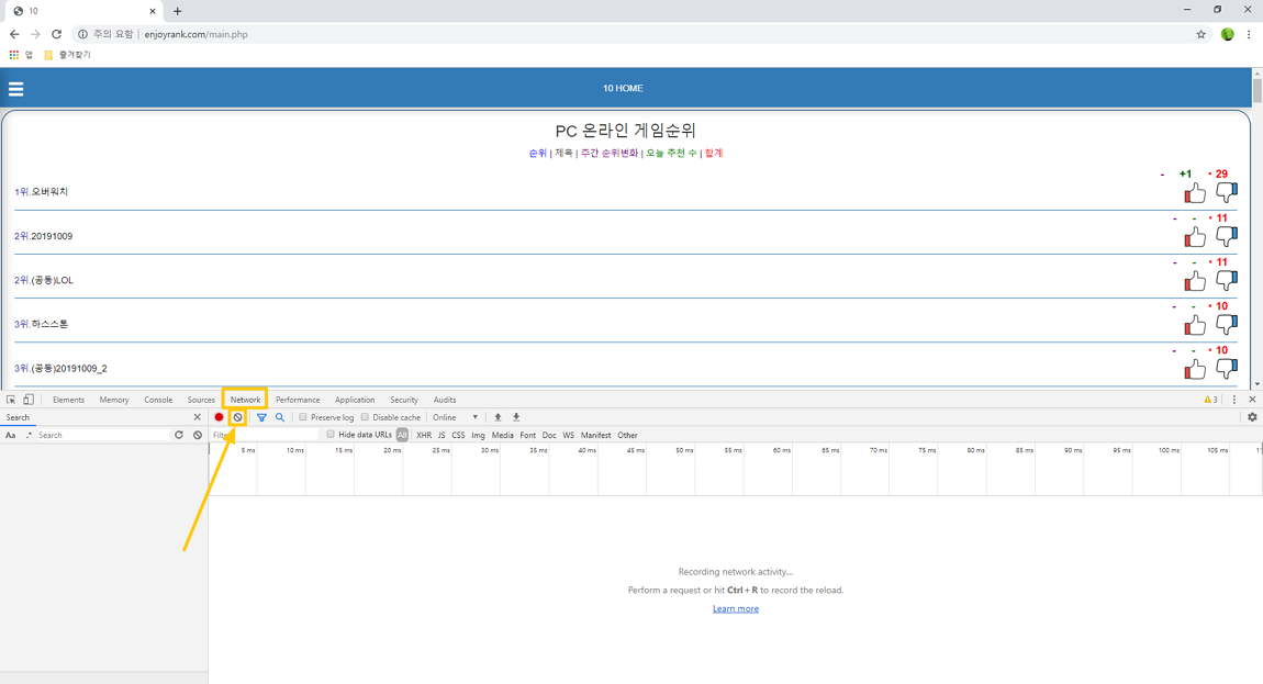 웹 프로그래밍 크롬 브라우저 개발자 모드 네트워크 소스 기능 활용
