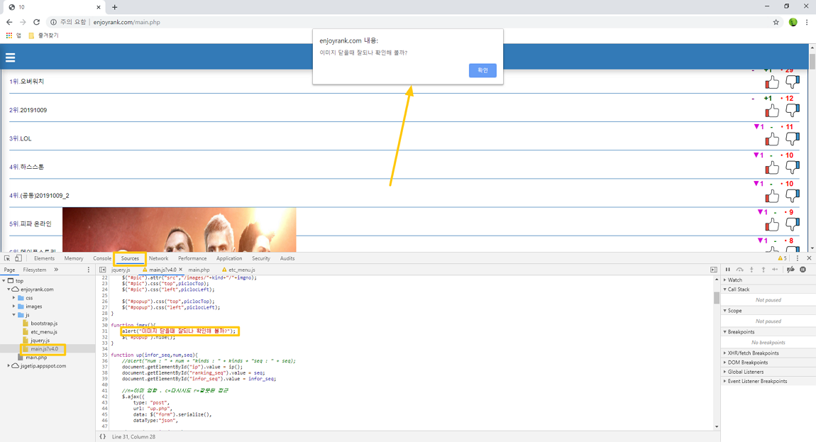 Sources 메뉴를 확인해 보시면 해당 페이지에서 사용하는 파일들이 어떠한 것들이 있는지 확인이 가능하며 경로는 어떻게 되어있는지 한눈에 파악 할 수 있어 편합니다.