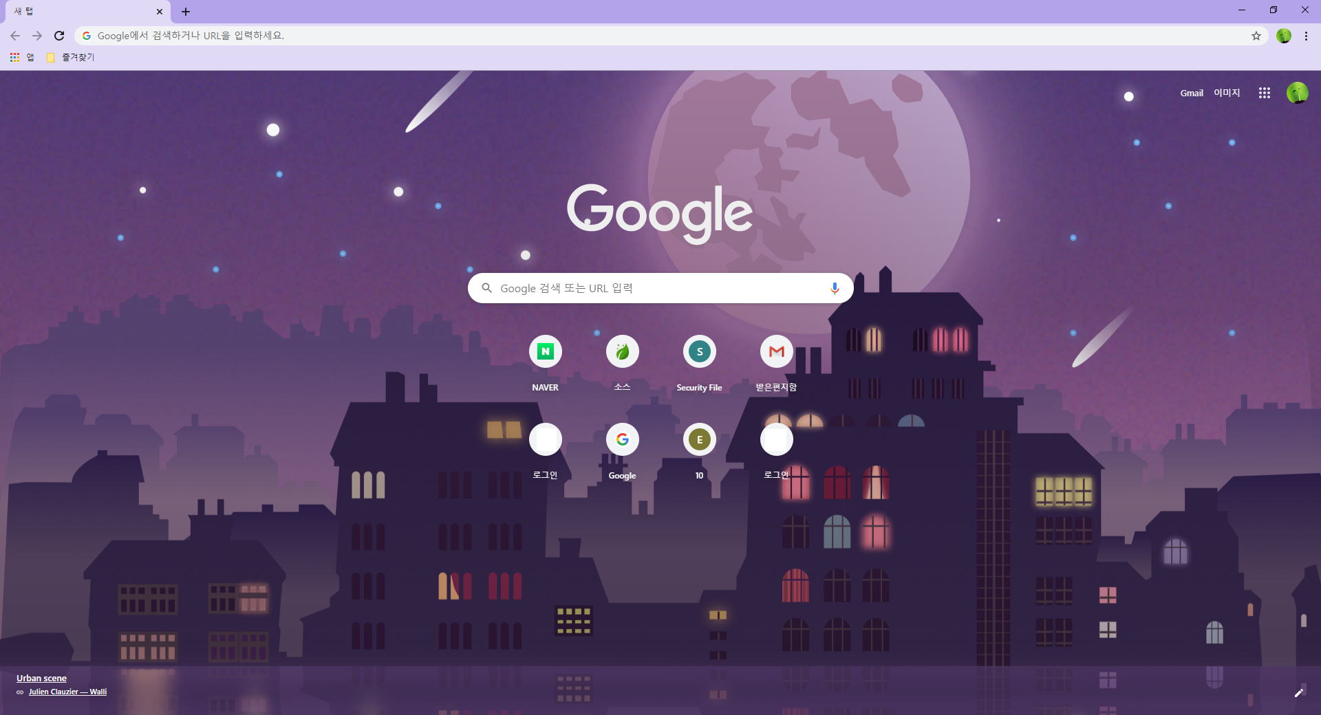크롬 브라우저의 맞춤설정 메뉴를 활용해서 아래 이미지와 같이 크롬 브라우저를 꾸며 보았습니다.
