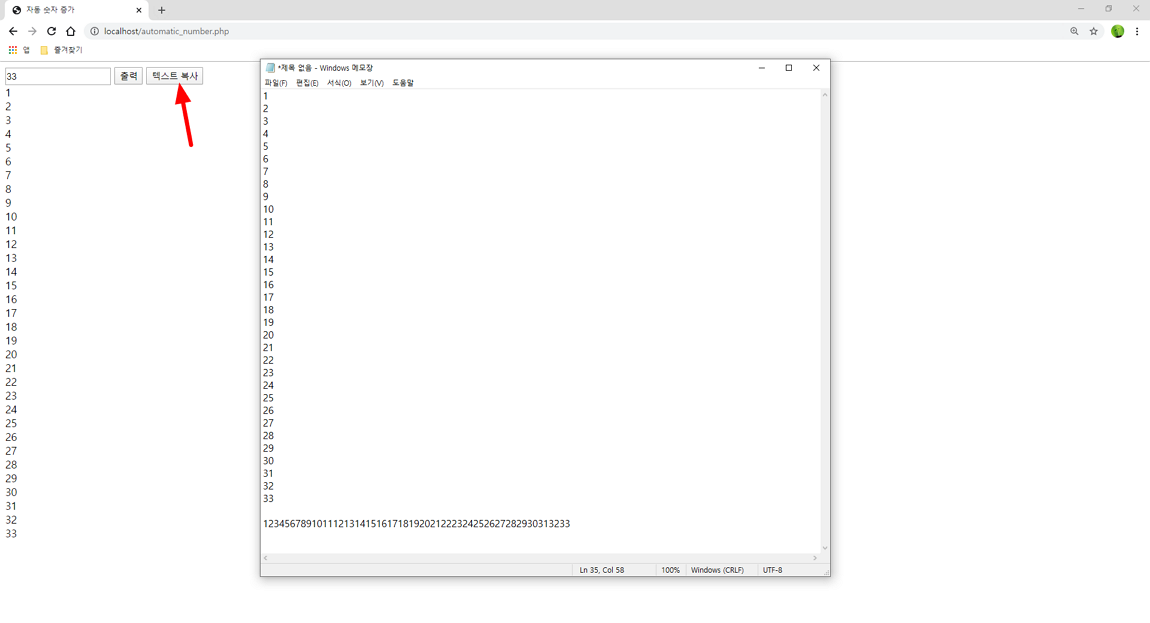 웹페이지에서 원하는 숫자만큼 출력된 숫자를 드래그해서 복사해 올 수 있습니다. 해당 기능이 필요했던 이유는 HTML textarea 태그에 라인이 얼마나 DB에 들어가는지 보기 위해서 아래 이미지와 같이 칸별로 숫자가 순서대로 증가하는 것이 필요했습니다.