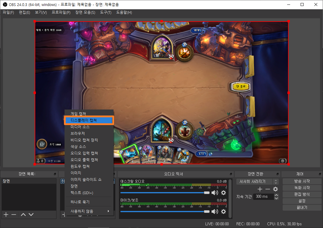 화면을 캡처하기 위해 여러 가지 방법이 있는데 디스플레이 캡처를 통해 간단히 화면을 캡처해 보겠습니다.
