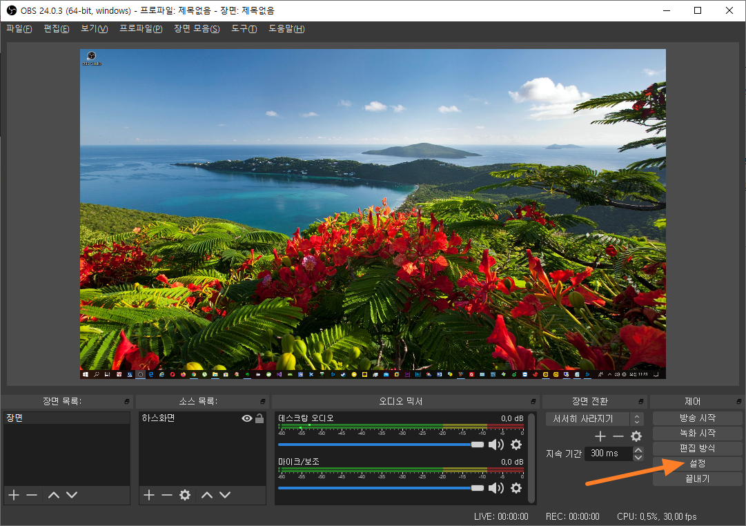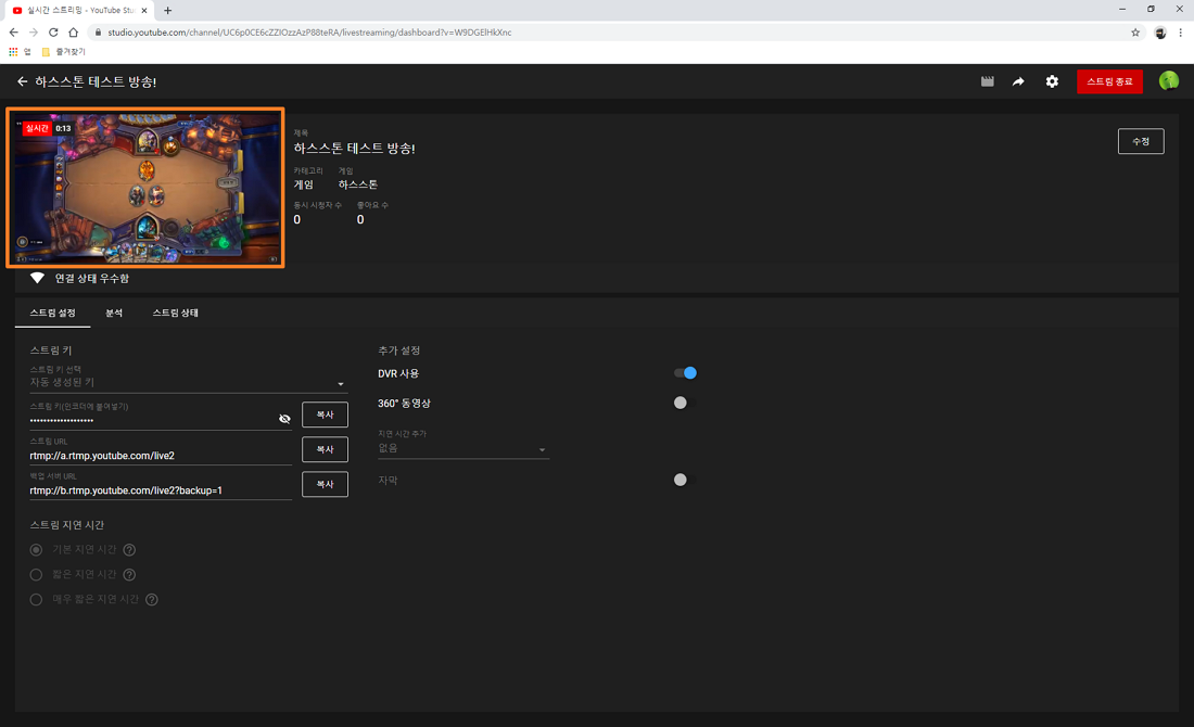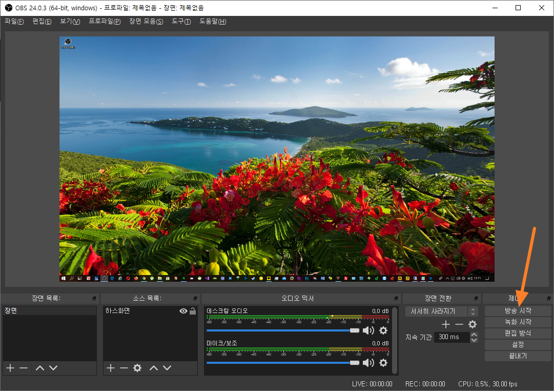 이제 설정이 끝났으니 방송 시작 버튼을 눌러 주시면 됩니다.