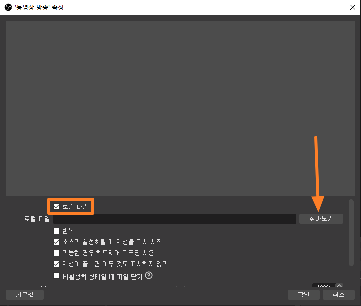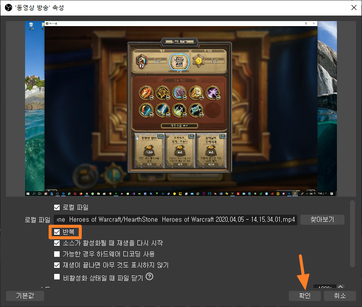 해당 기능을 이용할 때의 장점이라고 한다면 OBS 프로그램이 시작 되었을 때 자동으로 파일이 재생되는 화면이 나온다는 정도 일 것 같습니다.