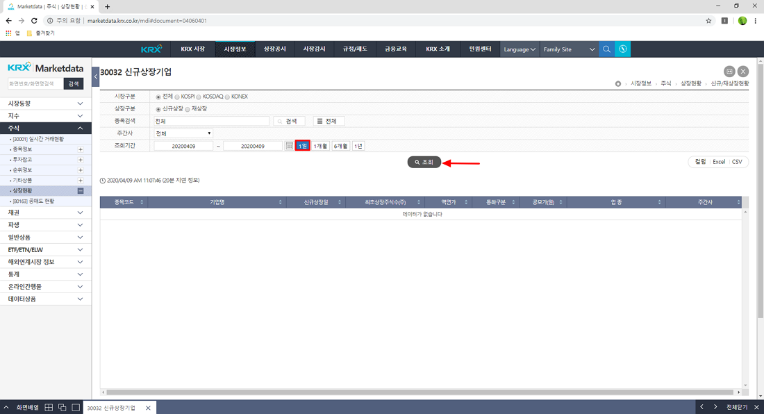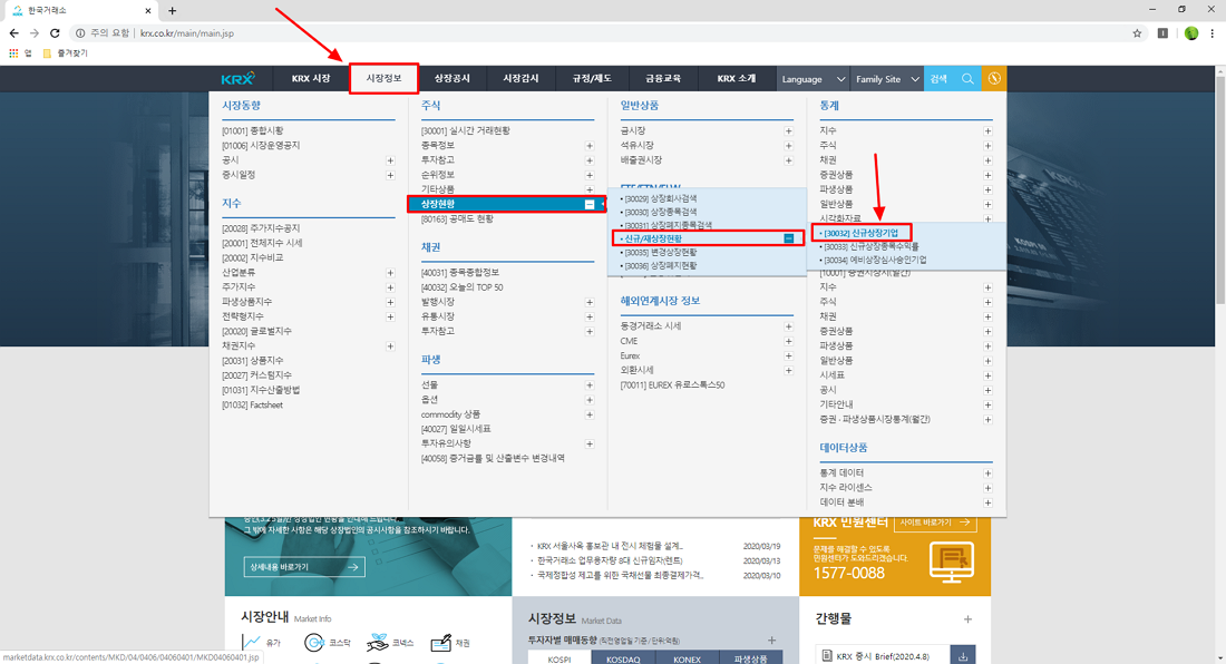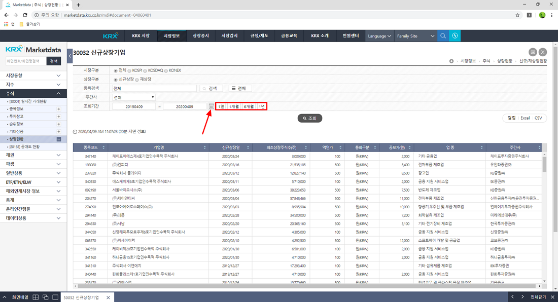 PC 버전 한국거래소 사이트를 통한 신규 상장 기업 리스트 확인 방법