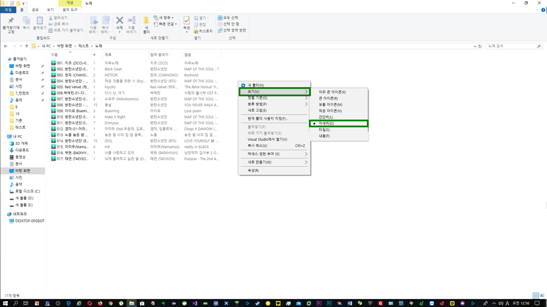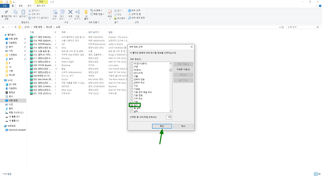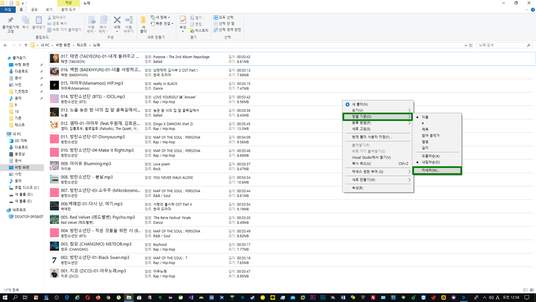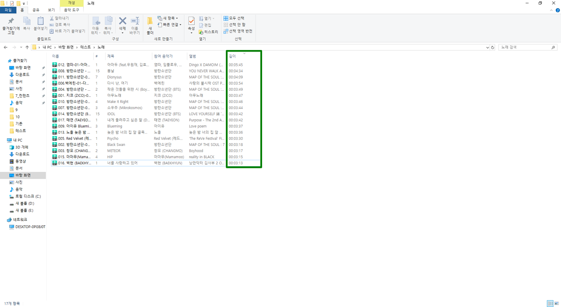 윈도우 음악 동영상 파일의 길이로 파일을 정렬하는 방법