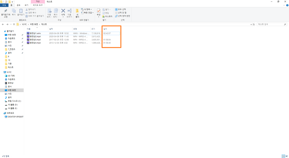 아래 이미지와 같이 동영상 파일의 경우만 모여있는 폴더의 경우는 길이가 표시되는 예도 있지만 대부분 파일의 길이가 표시되지 않는 경우가 많습니다.