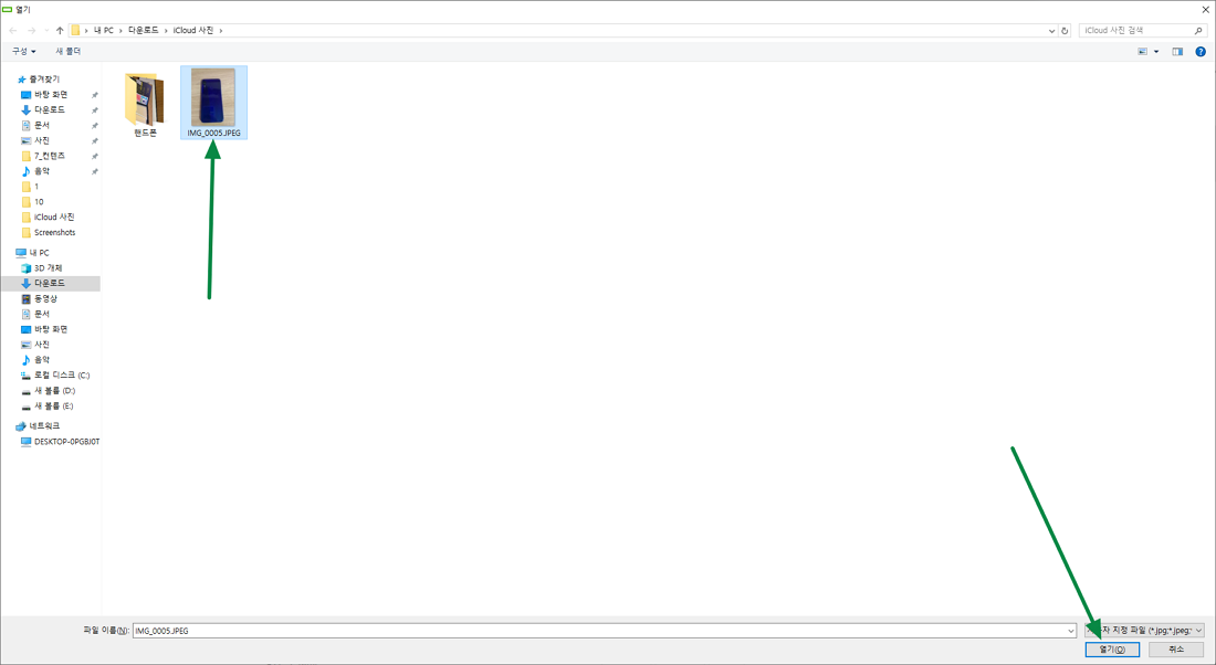 PC에 있는 사진을 한장 선택 하시고 확인을 눌러 주시면 됩니다.