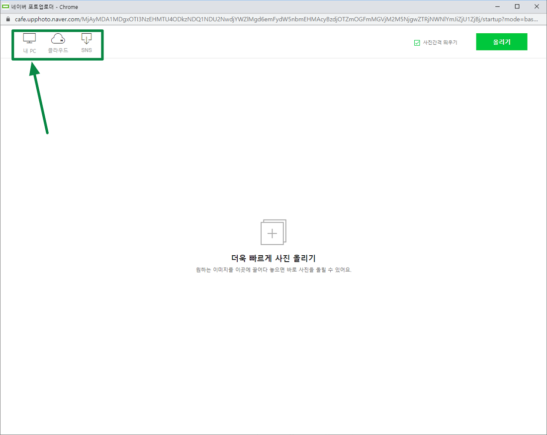 네이버 에디터를 통해 이미지를 업로드하게 되면 아래 이미지와 같이 이미지를 업로드할 수 있는 새 창이 나오게 되며 세 가지 메뉴 중 현재 PC에 있는 이미지를 업로드하려면 내 PC 메뉴를 눌러 주시면 됩니다.