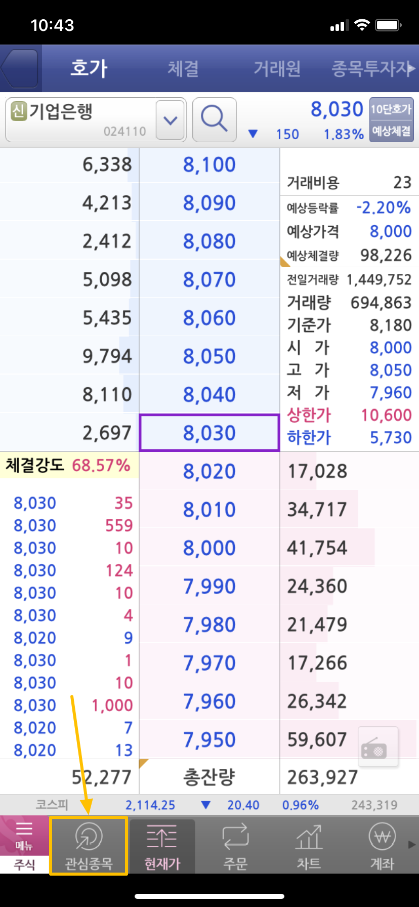 개별 창으로 관심 종목들을 확인할 수 있지만, 주식을 매수하고 매도하면서도 관심 종목의 현황을 확인할 수 있습니다.