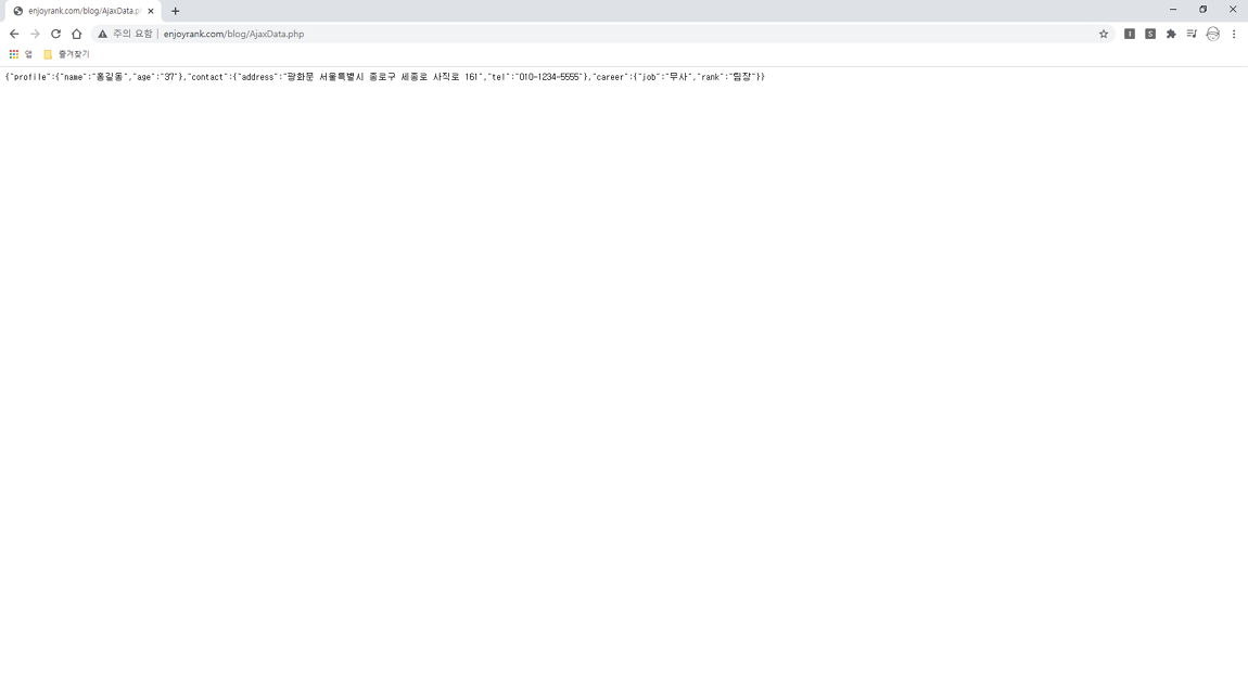 정상적으로 JSON 형태의 데이터가 작성되었다면 아래 이미지와 같은 형태로 웹페이지가 표시되게 됩니다.