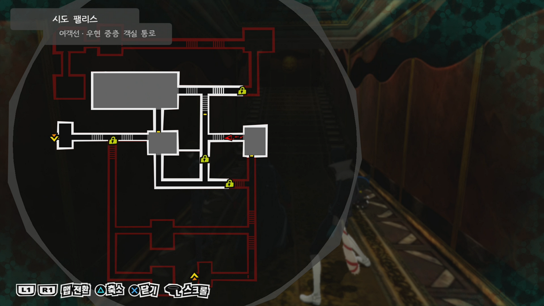 개인적으로 페르소나5 게임을 하면서 괜찮다는 생각이 들었던 부분은 전체 맵에 대해서 한눈에 볼 수 있도록 맵에 대한 내비게이션 디자인의 구성이 간편하고 간결하게 잘 만들어 맵을 돌아다니면서 많이 헤매지 않아서 좋았습니다.