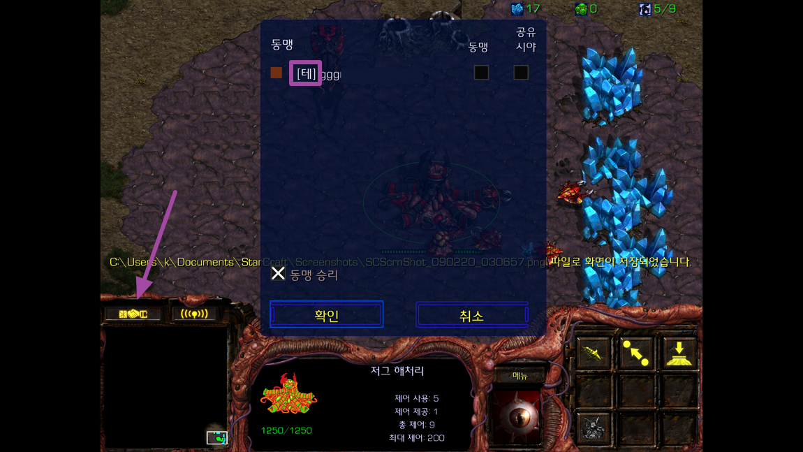 이럴 땐 게임 내에 동맹 아이콘을 통해 상대방이 어떤 종족을 선택했는지 다시 한번 확인할 수 있습니다. [선택한 종족 첫글자] 상대방 닉네임 형태로 표시됩니다.