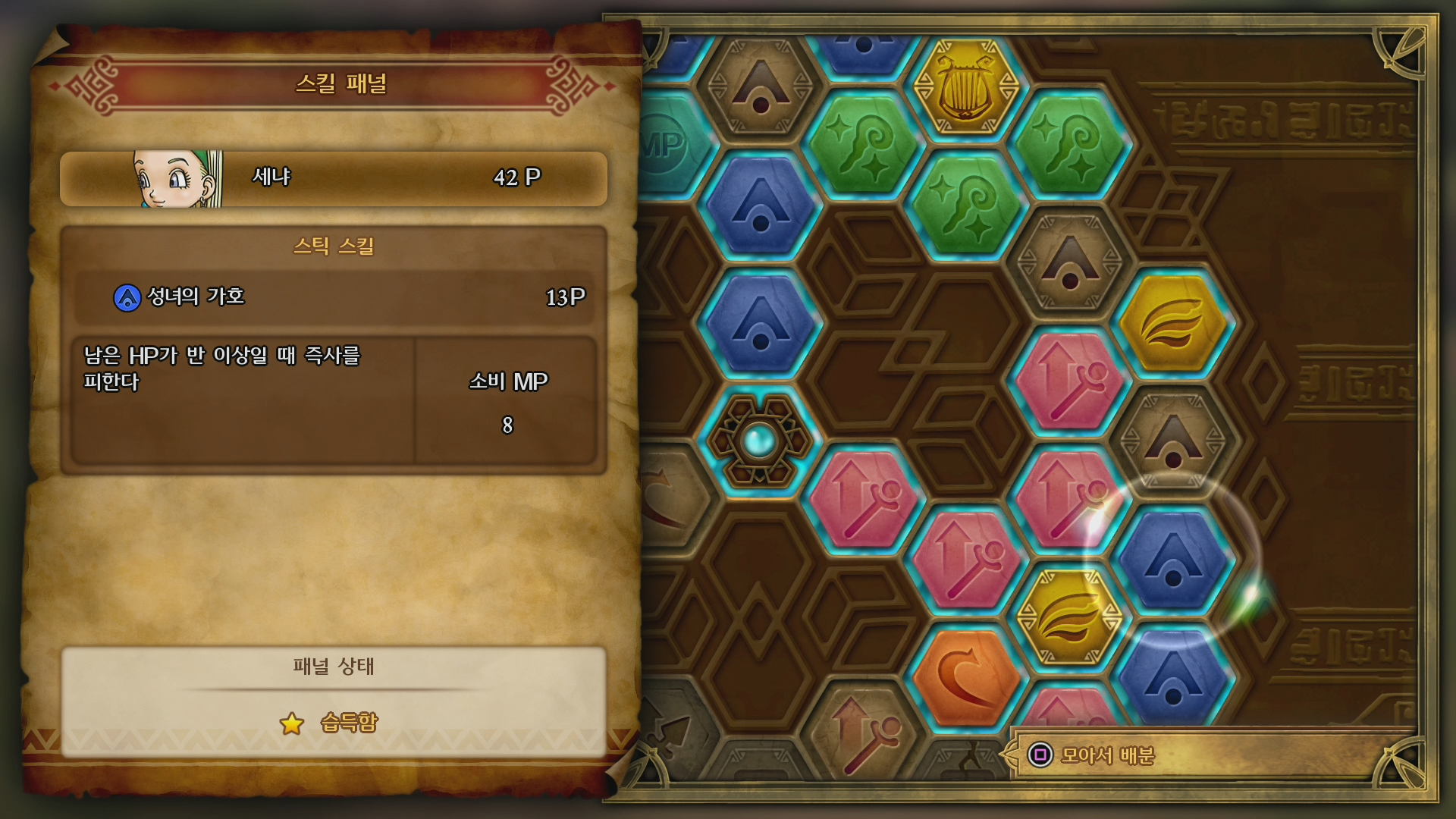 게임의 스킬과 관련된 화면인데 게임의 전체적인 난도가 높지 않아 스킬을 고뇌하며 사용할 수준은 아니었지만 새로운 스킬을 적용하고 사용하는 부분이 재밌었습니다.