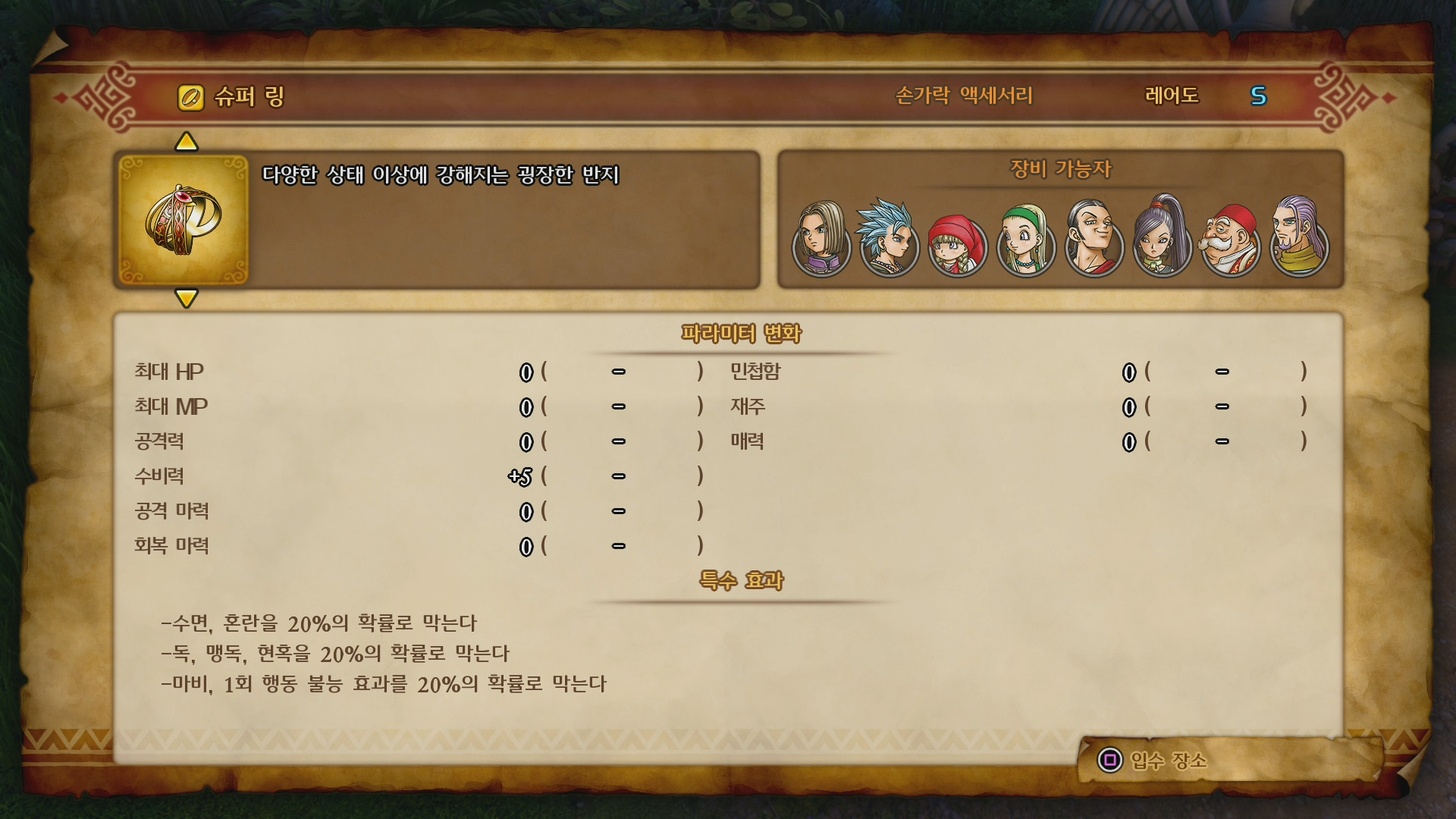 아이템의 여러 속성과 효과들도 활용하는 재미가 있었습니다. 자동 MP 회복이라든지 각종 상태 이상과 즉사를 막는 아이템을 제작하기 위해 재료를 모으는 데 고생하기도 하였고 아이템을 획득하기 위해 많은 곳을 돌아다니기도 했던 기억이 납니다.