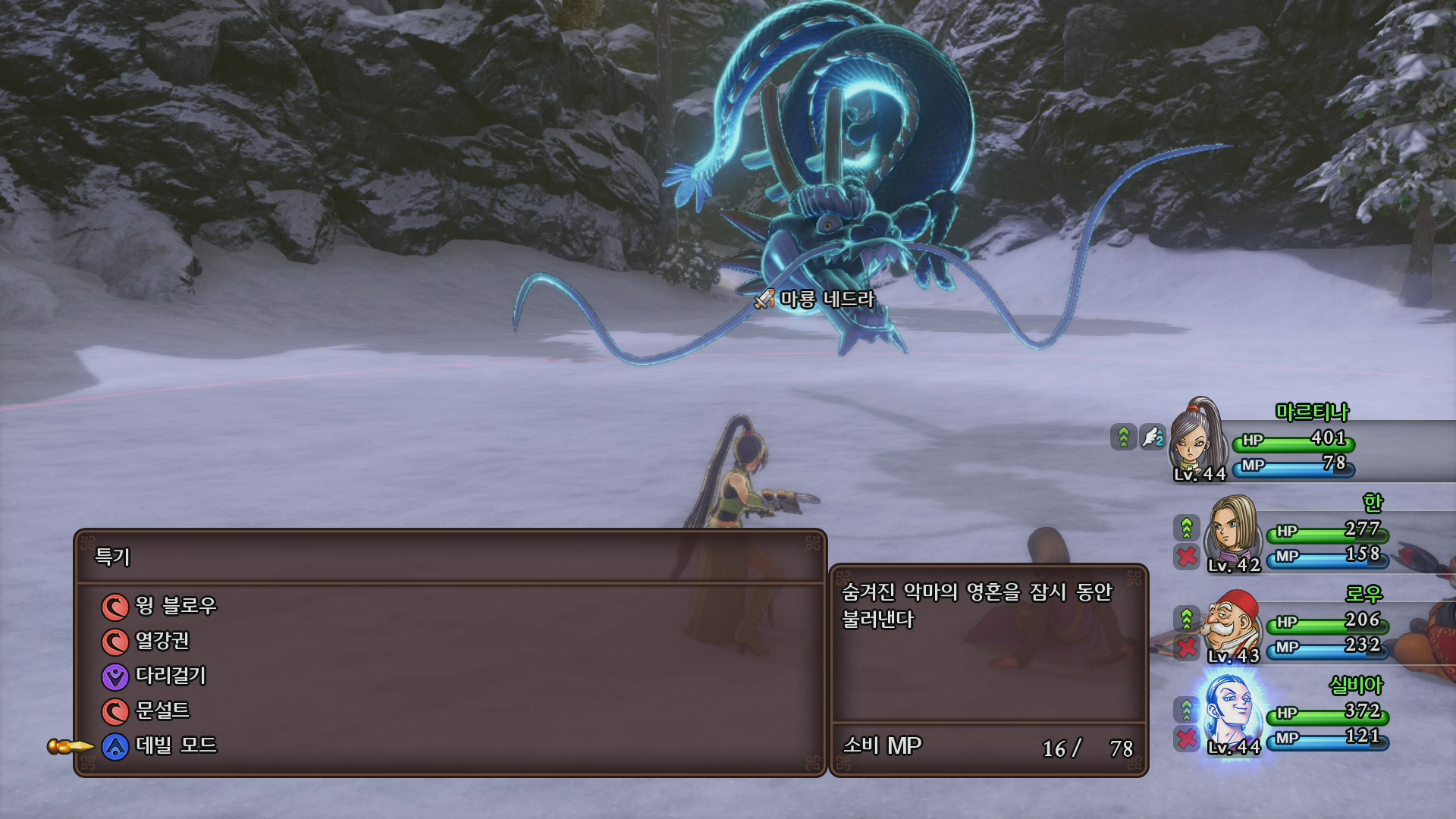 전투 내에 표현되는 스킬을 사용하며 멋진 액션을 보고 싶을 때도 있었고 다양한 상태 이상 마법과 전투 아이템을 활용하여 전투를 진행하는 재미가 있었습니다.