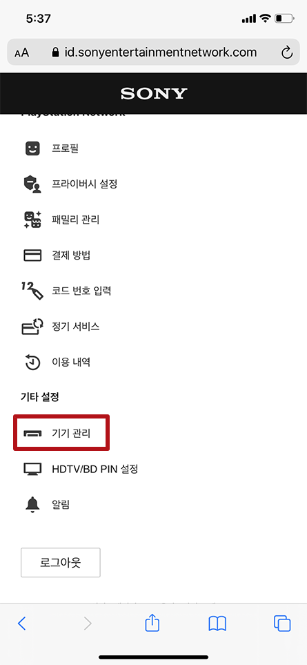 이곳에서 기기 관리 메뉴를 선택하시면 됩니다.