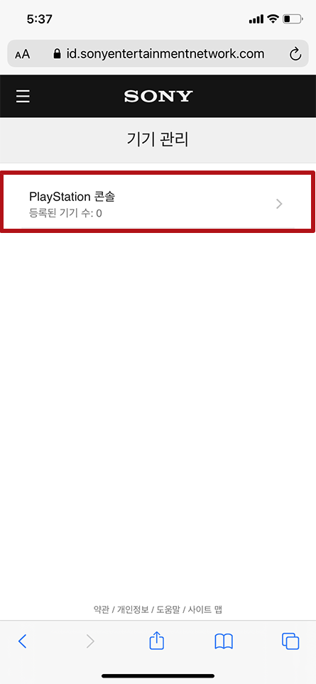 마찬가지로 저는 이미 기기 해제를 하였기에 등록된 기기 수가 0개이지만 이전에 등록했던 기기가 있으셨던 분은 기기 관리에 PlayStation 콘솔 메뉴를 선택해 기기 해제를 진행하실 수 있습니다.
