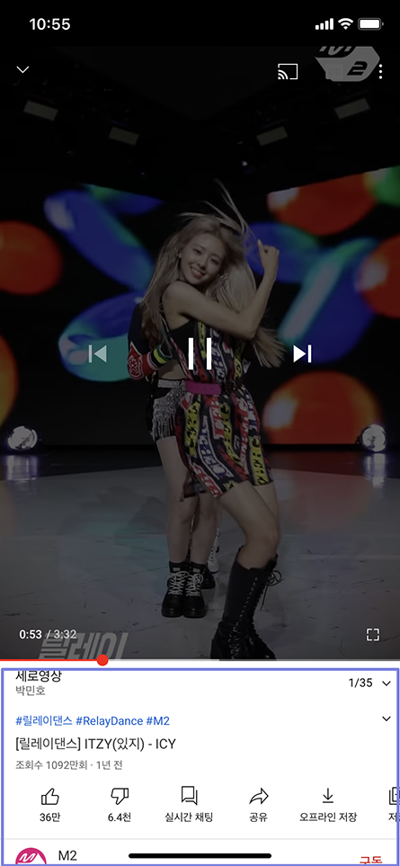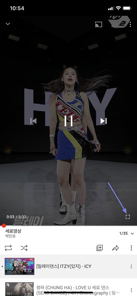 그런데 유튜브 앱을 사용하다 보면 아래 이미지와 같이 전체화면 전환을 할 수 있는 버튼이 작다 보니 실수로 잘못 누르는 경우도 종종 있었던 기억이 납니다.