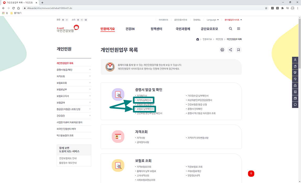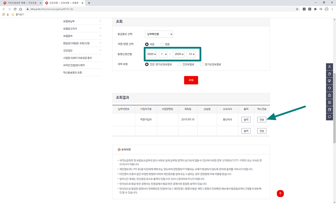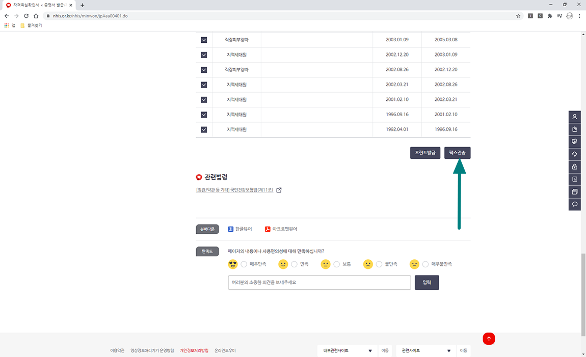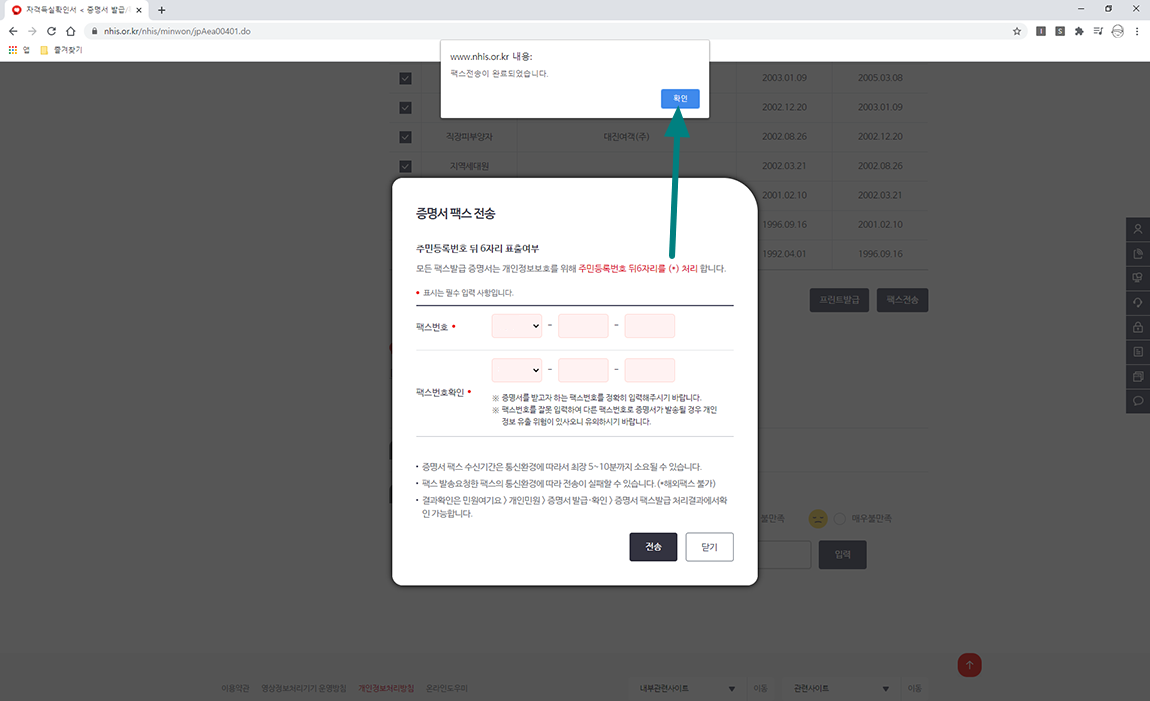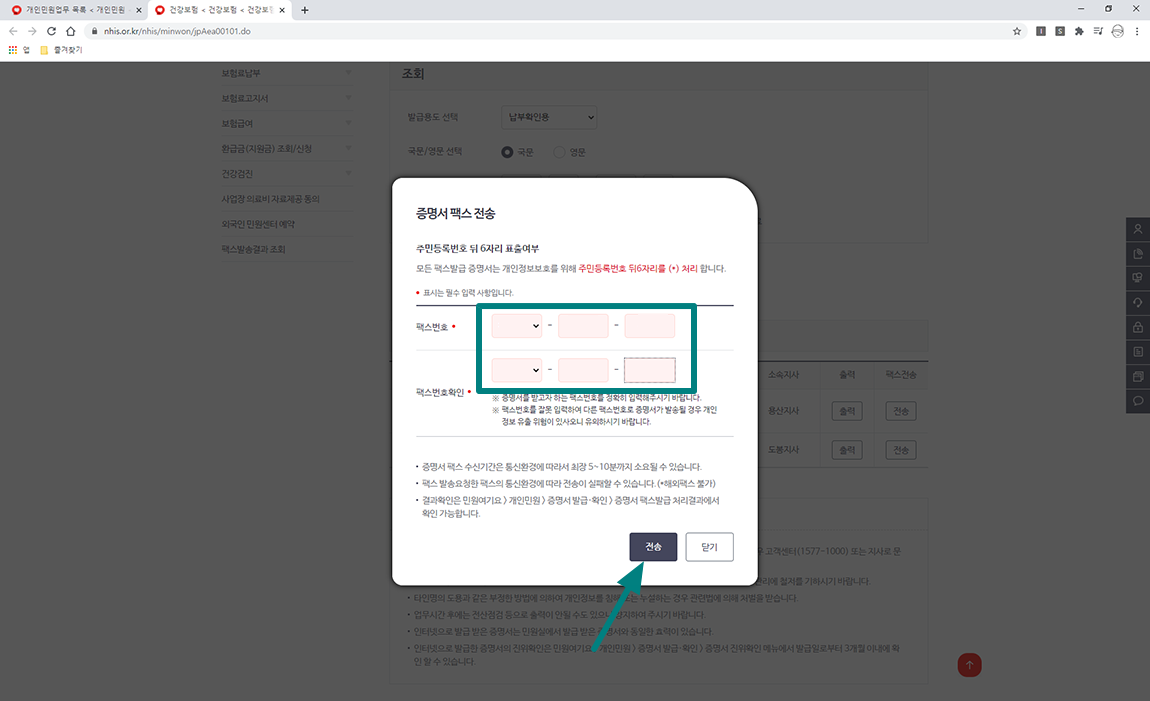건강보험 인터넷 팩스 전송 방법(자격 득실 확인서·건강보험료 납부 확인서)