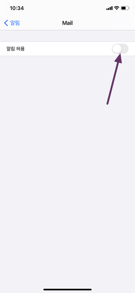 아래 이미지와 같이 알림 허용을 모두 비활성화했는데 생각해 보니 중요한 메일은 바로 확인할 수 있도록 배지 알림만 표시되지 않도록 하고 새로운 메일은 알림을 통해 확인할 수 있도록 해놔야겠습니다.