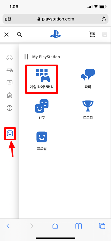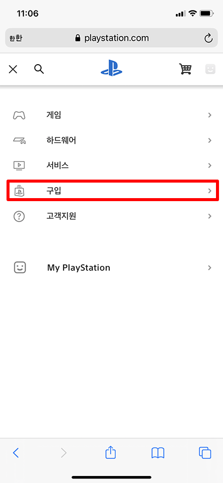 모바일 브라우저를 실행하시고 www.playstation.com/ko-kr사이트에 접속 하신 후 왼쪽 상단에 메뉴 버튼을 누르시면 됩니다.