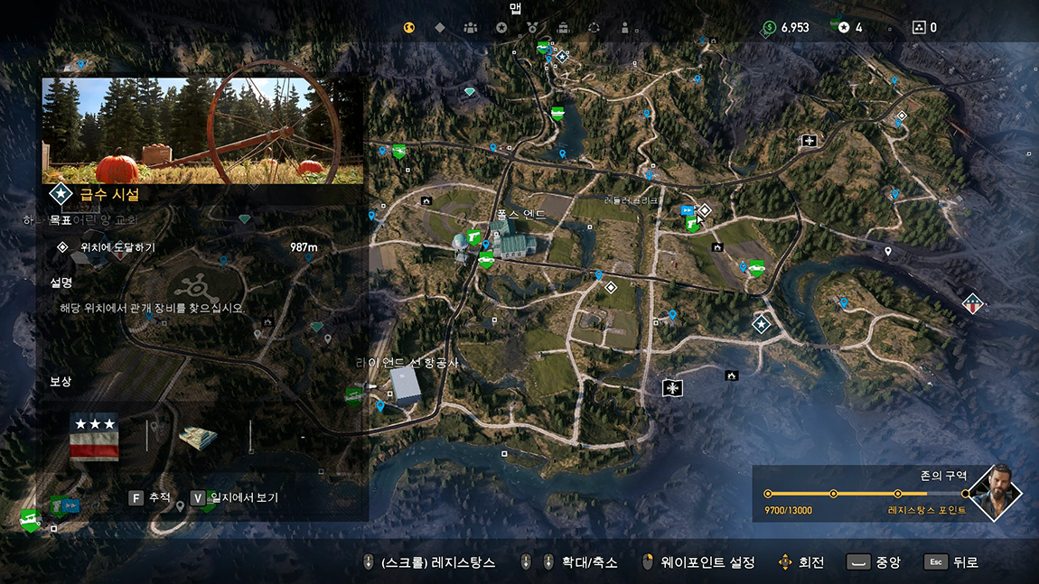 이전 파크라이 시리즈에 비해 맵을 보는 화면도 업그레이드가 되어 좋았습니다. 단순한 맵 표시가 아닌 입체감을 주는 맵 구성 및 표현 덕분에 맵을 열어보며 지루함을 느끼기보다 흥미를 느낄 수 있게 해주어 좋았으며 보스를 제압하기전 필요한 레지스탕스 포인트 시스템으로 인해 자연스럽게 게임에 여러 가지 것을 즐길 수 있도록 유도한 부분은 좋았습니다.