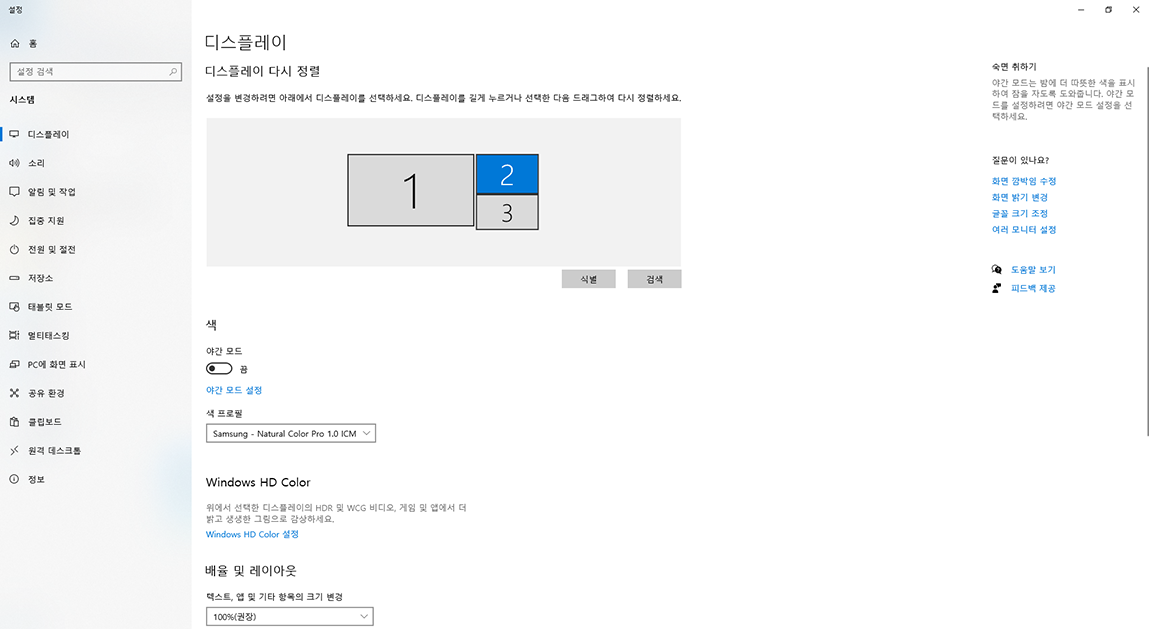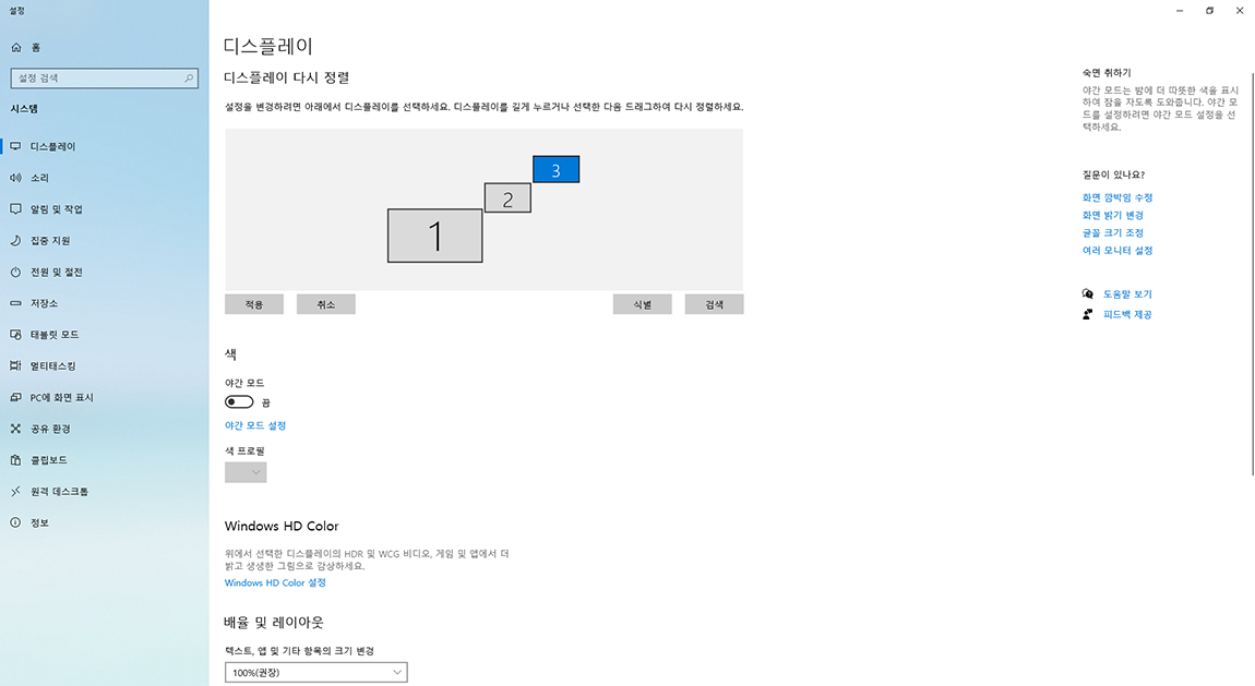 제가 사용하는 모니터는 3번 해상도는 1920 x 1080, 1번 해상도는 3840 x 2160, 2번 해상도는 1920 x 1200입니다.