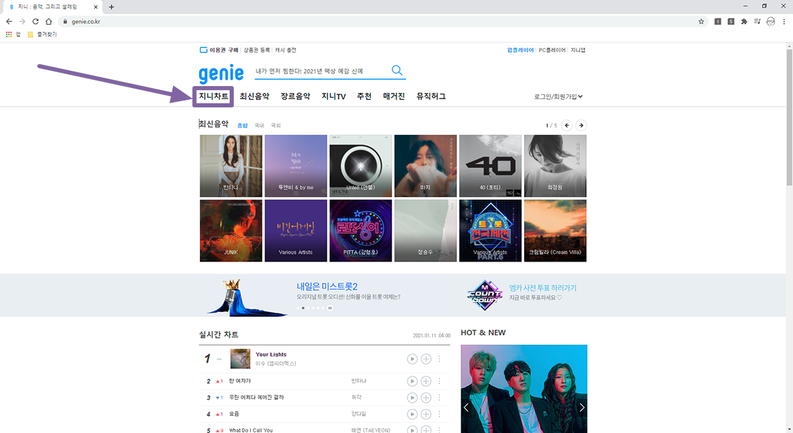 지니뮤직 - www.genie.co.kr/chart/musicHistory
