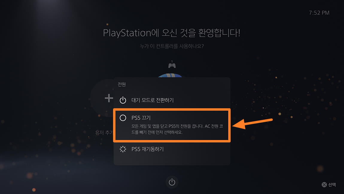 3가지 대기모드, PS5 끄기, PS5 재기동하기 메뉴 중 PS5 끄기 메뉴를 선택하시면 됩니다.