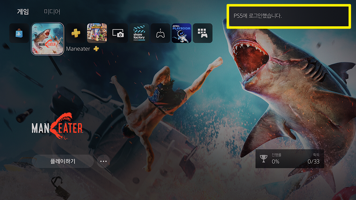 위와 같이 PS5 자동 로그인 설정이 완료되면 PS5 전원을 켜면 자동으로 로그인까지 완료되어 PS5 초기화면 까지 조작하는 과정 없이 진입이 되니 편합니다.