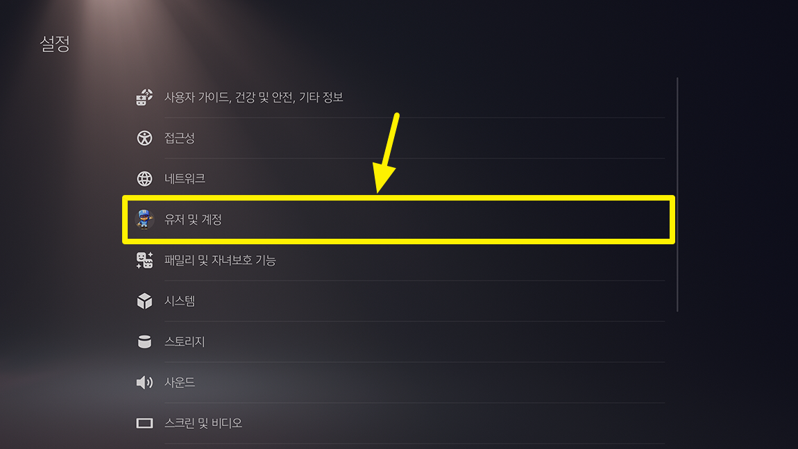 PS5 자동 로그인을 설정하시려면 먼저 PS5 컨트롤러의 ↑ 버튼을 눌러 설정 메뉴로 진입하시면 됩니다.