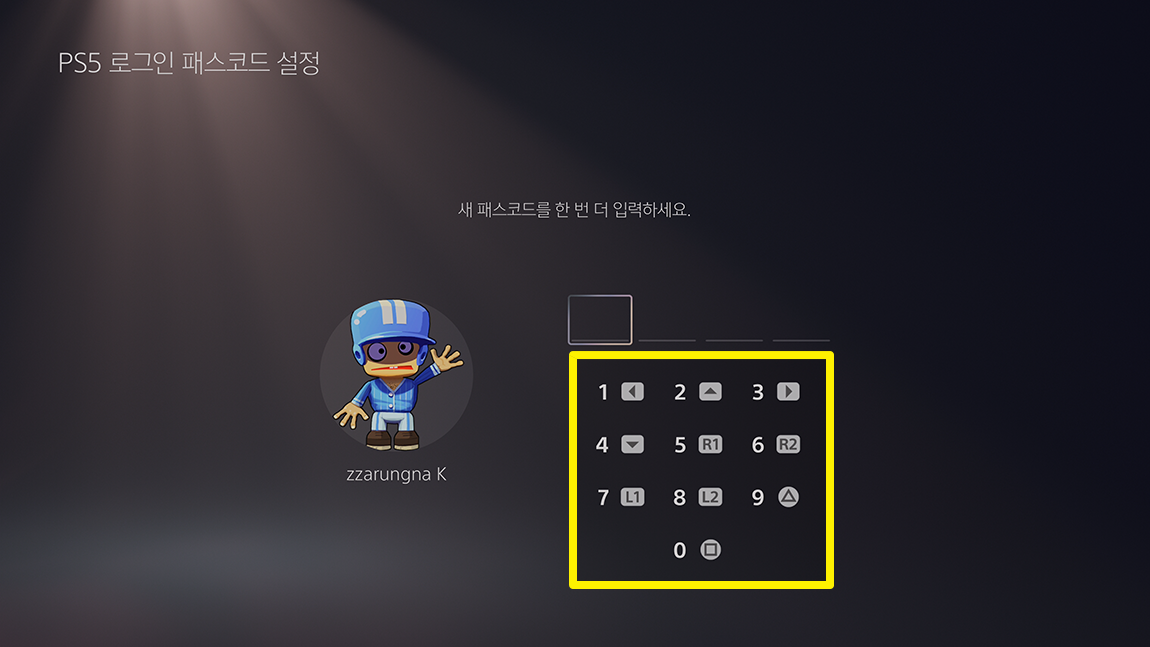 PS5 로그인 패스코드 설정은 어떻게 생겼는지 궁금해 한번 눌러 봤습니다.