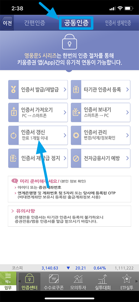 키움증권 인증서 갱신 방법ㆍPCㆍMOBILE